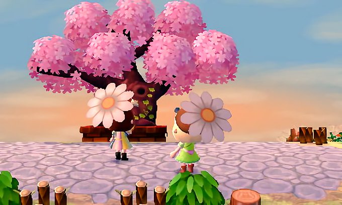にんぺんさん(@nimmpen )のセントエルモへお花見に🌸 お気に入りのスクショUP 桜色染まった森に 白いマーガレットが2輪