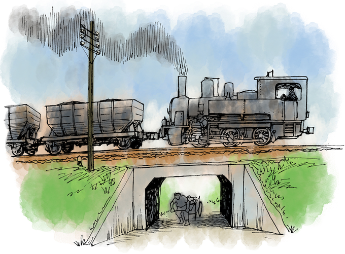 【身辺雑記】Kindle『Nゲージレイアウトプラン全集①青の巻』より。配置図右側の線路、手前(国鉄連絡線)では空車を引き出し積車を押し込み、奥(炭鉱の選鉱所)では逆に積車を引き出し空車を押し込む。本線上で積車と空車が走る方向をそれぞれ統一するための、海外のレイアウトではおなじみのテク。