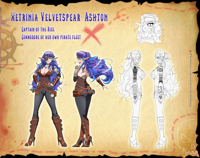 I am over the moon excited with the reference sheet @LeandroYep created for my pirate girl Xetrinia!