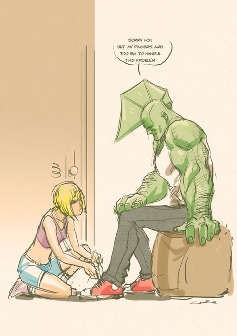 Tonight's sketch: Savage Dragon and Angel. I hope I got the fin right @ErikJLarsen :)