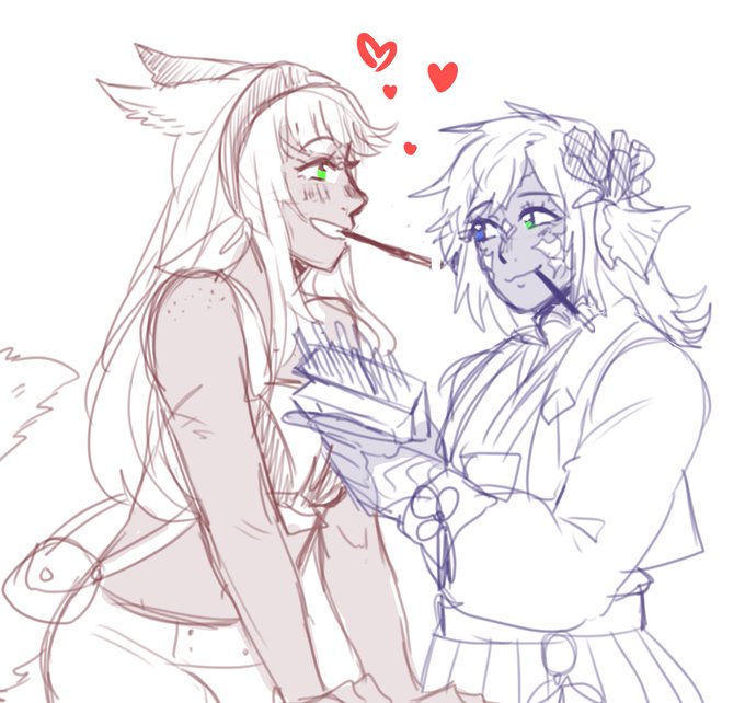 @thetictactician (late but) BEHOLD....... one small gaiaryne and then my oc ship sui (au ra) & yuve (miqo)!!! they are a slightly chaotic drk/warrior ship but they are very much in love and very cuddly!!