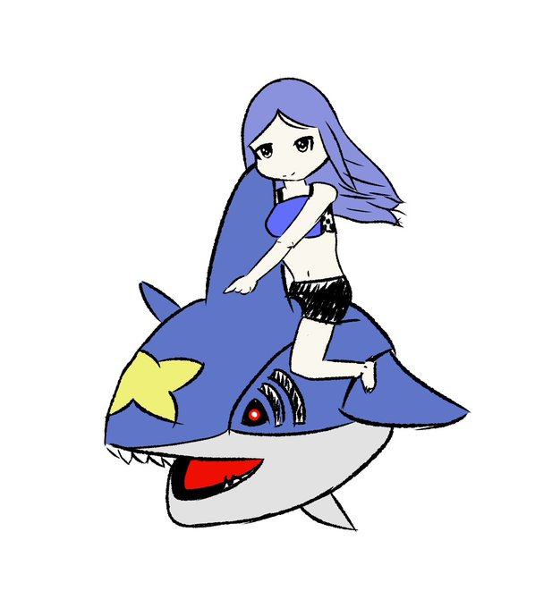 サメハダーに乗るナデを描きました