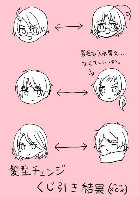 例の髪型入れ替えるやつやってみました!髪色も服もそのままで、ほんとーーに純粋に髪型だけチェンジしました。個人的に北米がそんなに違和感なくてびっくり・・・さすが兄弟