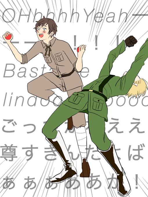 1枚目は参考までに元ネタをお借りしました。 ドツドツのゴイツ(いかつい)とか アアアアア!D(ドゥ)メリカだぞ!とか くだらんのしか思いつかん(笑)