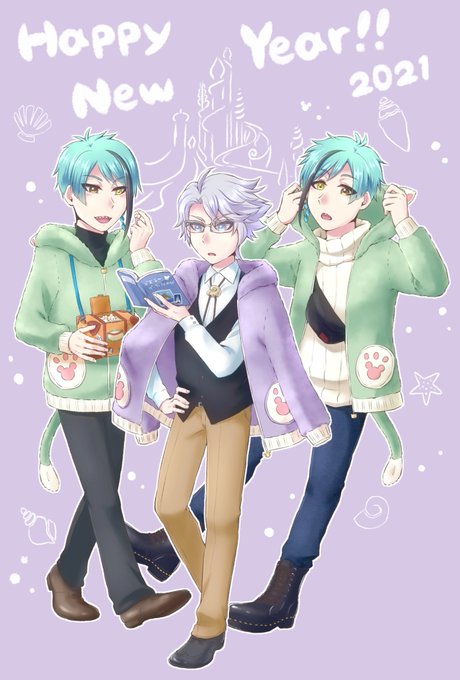 そろそろ年賀状絵公開していいかな? 今年はでずにーを満喫するオクタでした!お揃いでもこもこパーカー着てくれ #ツイステファンアート