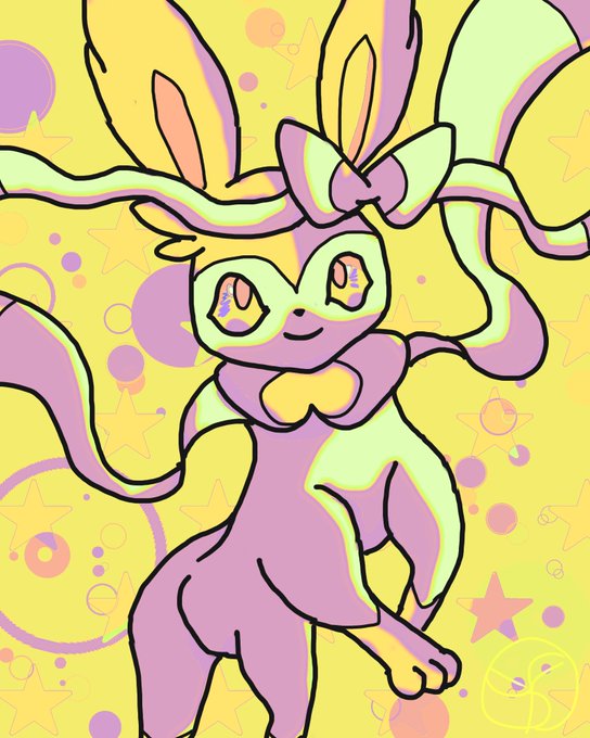 ニンフィア もっと変わった画風にするつもりだったのに、結局普通の描き方になってしもうた #ポケモン #ニンフィア #イラスト