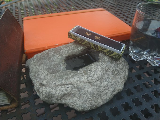 Ink painting of my OC Alta near some mountains. Paper, tools, and adjusted scan pictured.