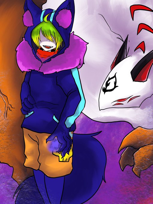 目が絶対見えないメカクレの夜君です…!2枚目が獣の姿になります!