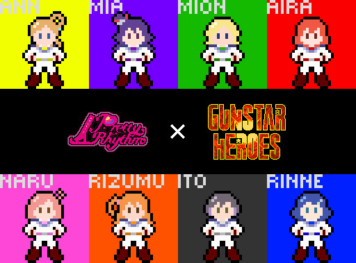 @haruneliko_0920 今日はガンスターヒーローズ発売記念日なのでプリティーリズムとガンスターヒーローズのコラボドット絵を投稿しました!