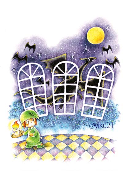 こちらの作品はものすごく昔に描いた、不透明水彩と色鉛筆の混合作品。いろいろ試行錯誤しております。
