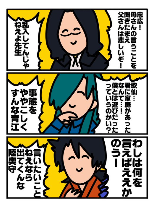 南海先生と肥前くんのログ2 #刀剣乱舞 #刀剣乱腐 #南海太郎朝尊 #肥前忠広 #にっかり青江 #肥南 https://t.co/nfV9UWSwkp