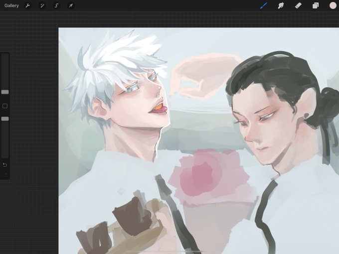 ลองเอาที่เคยร่างไว้มาลงสีค่ะ เคยวาดโกะโจผมยาวไว้ เลยวาดเกะโทผมสั้นบ้าง กร้าวใจนุมาก บ่ไหว 🥲