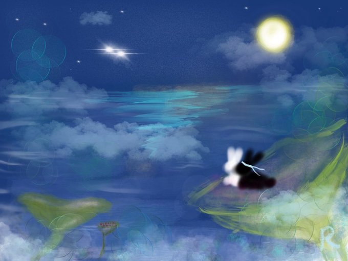 달 밝은 어느날, 두 토끼는 밤산책을 나섰어요