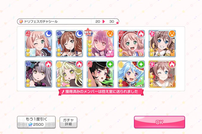 クリスマス限定、単発ガチャチケで☆42枚。内1枚はピックアップの日菜ちゃん。日菜ちゃんの☆4は1枚も持ってなかったから嬉しい。