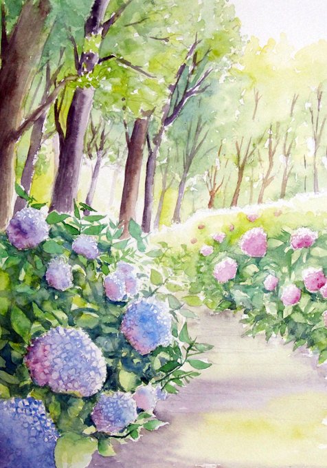 空想の森の風景画を水彩で描きました。