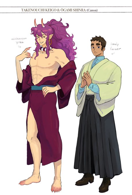 [oc] omg no way new great ace attorney dlc characters dropped 😳 shinra (purple) belongs to @hanviito !!