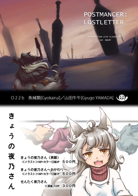 またギリギリ告知になってますが 日曜の関西コミティア51に参加します。スペースはB-35です。コミティア121の新刊、夜乃さんまとめ本3『きょうの夜乃さん~三杯目~』と、『POSTMANCER:LOSTLETTER[2nd edition]』関西初売りです。既刊もありますでよ。