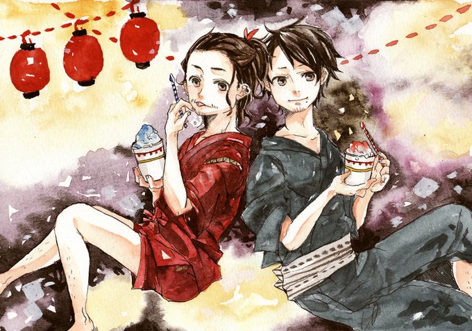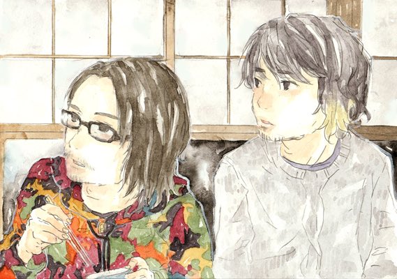 この風とロックのまつだ家の写真たち可愛すぎて昔絵描いたよね、えいじゅんとみね☺️
