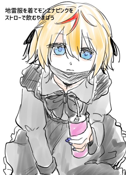 地雷服を着てモンエナピンクをストローで飲むやまぱう