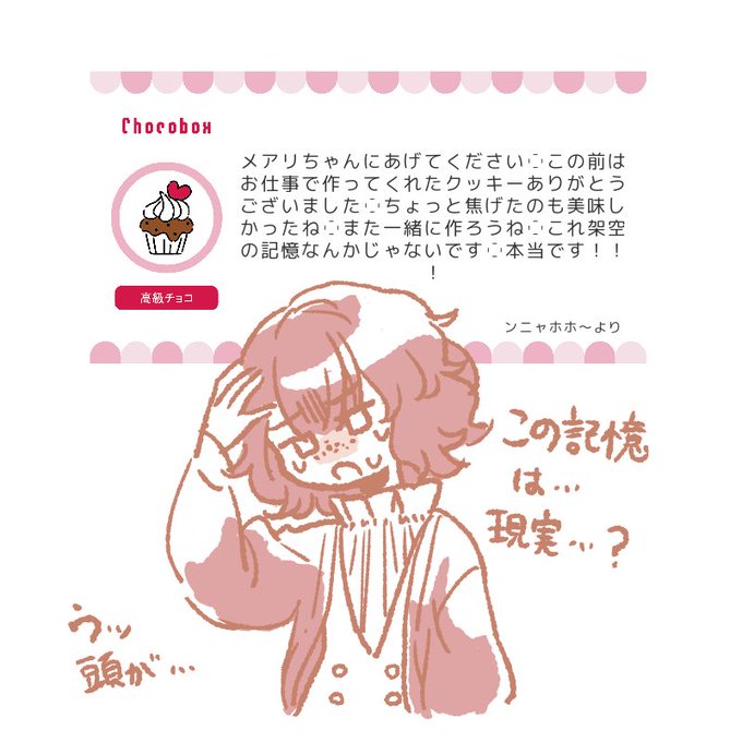チョコありがとうございました絵その3🍫(リツオくんからのチョコメッセージは私信だったので中身は伏せました♥︎)アーチェスへも時空を超えて届いてます ありがとうございました!
