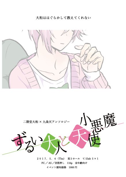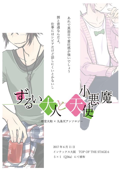 ヤマ天アンソロ「ずるい大人と小悪魔天使」頒布から1年が経ちました。お手にとっていただいた皆様、本当にありがとうございます!明後日に迫ったスパコミでも持ち込みいたします。スペースは、東7ホールで31b「黄昏と暁」です。よろしくお願いします!
