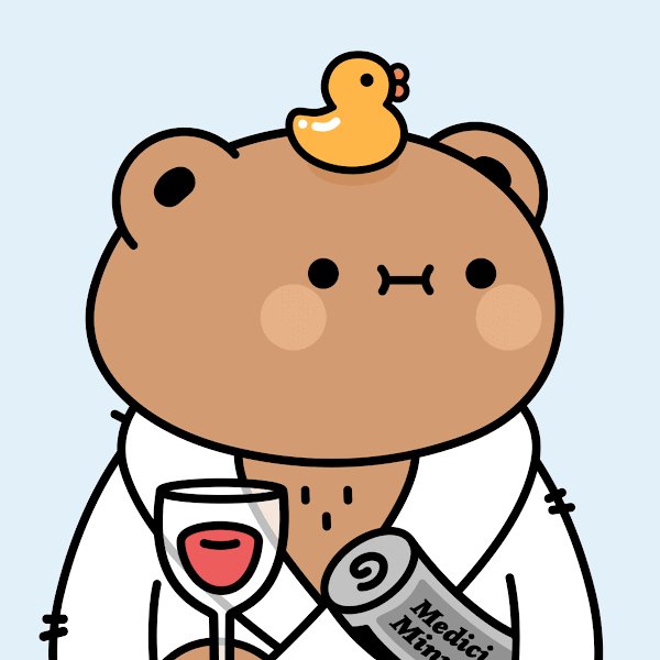Cherry on top was @irag_art airdropped us this last cutie. We'll definitely be channeling our dude as we read @CozomoMedici's Medici Minutes 🧐 LOOK AT HIM😂🐻