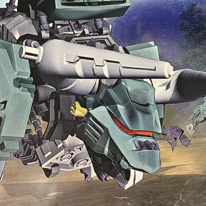 曲面多めでラインの変化が多い頭部アーマーに角、Vの字下顎、フチに枠がある3連ミサイルポッド、源泉版キャノンブルカッコいいよねぇ…いじり甲斐あるよ…()