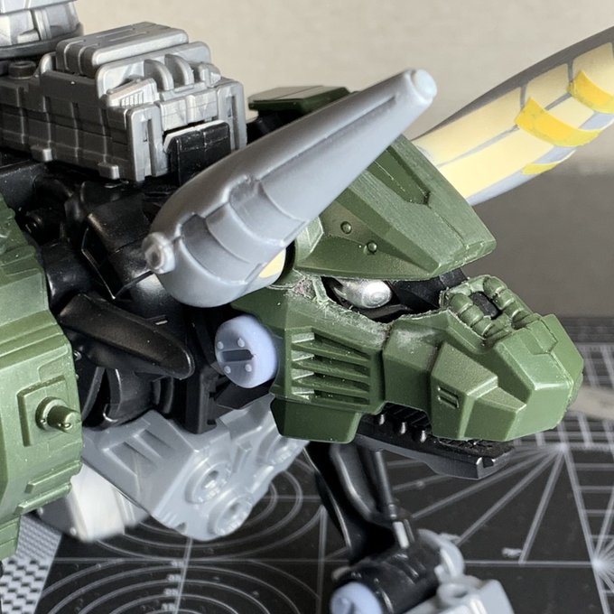 ゼノレックス、鼻先横とほほを削ってあげるとアニメCG寄りの優しい顔になる気がする キットだとサイドのメッシュになってるところもフィン状にするとディテールの統一感出て好き