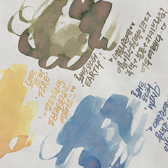 예전에는 잉크가 무조건 빨리 마르기만을 기다렸는데 요즘엔 잉크가 다 마르기 전의 모습을 좋아한다. 잉크가 고여있을때 빛받아서 반짝이는게 예쁘다.