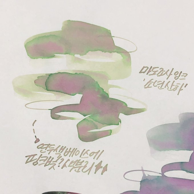 마르고 나면 굉장히 신기하긴한데 잉크 질감이 이상한 정돈 아니고 오히려 신기하고 예쁨... 마르기 전이 더 예쁜데 암튼 색분리도 아닌것이 오묘하다💫
