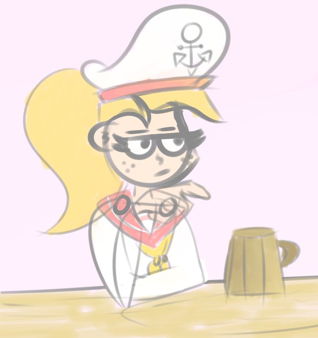 Wanted to practice my quick sketching so have a cutie doing some thinking over a mug of totally-not-grog
