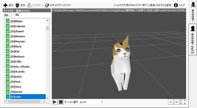 スマゲビの2Dキャラの表示(マップに配置する方)、立ち絵読み込んだらどうなんだろなって試したら普通にきれいだ……
