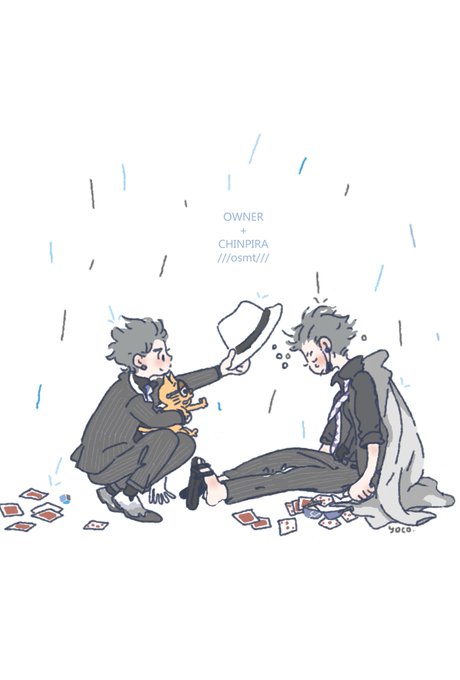 みんな映画見ているなかマイペース人間は派生描いてて明日、私も映画見に行くのでその前にチンくんとオーナーあげておきます☺️家出青年チンくんとオーナーです。
