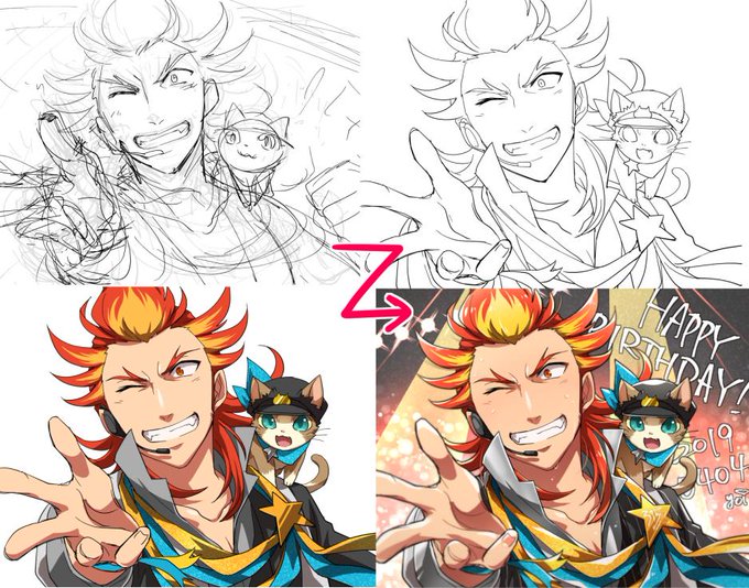 実のところ背景が3年前のお誕生日絵とほぼ同じ感じなんだけど、この絵も(今見ると直したいとこいっぱいあるけど)楽しく描けて気に入ってるんだ