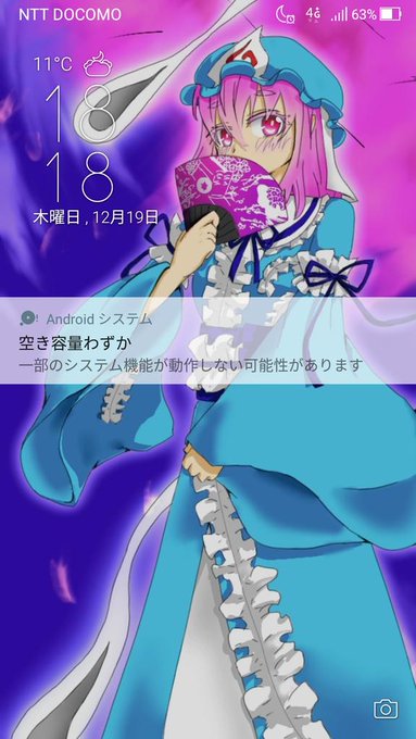 ホーム画面に設定。ついでにロック画面幽々子様再掲 なんかポーズほぼ同じなんだけど 引き出しがなさすぎる