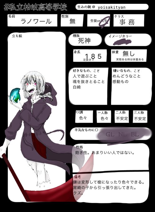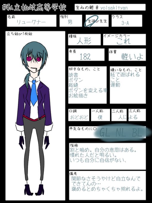 #私立柏岐中央高等学校 載せ忘れてました(土下座) またまた新キャラです! 恋人、身内以外なら!