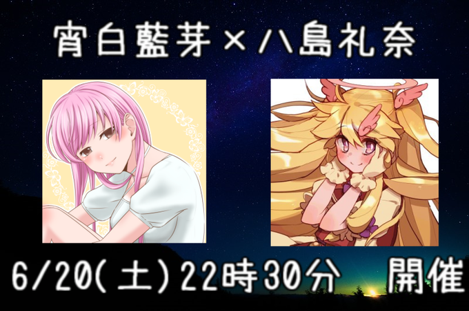 6/20(土)22時30分から、れなちゃんこと八島礼奈さん(@ReinaYASHIMA )とコラボキャスをします!