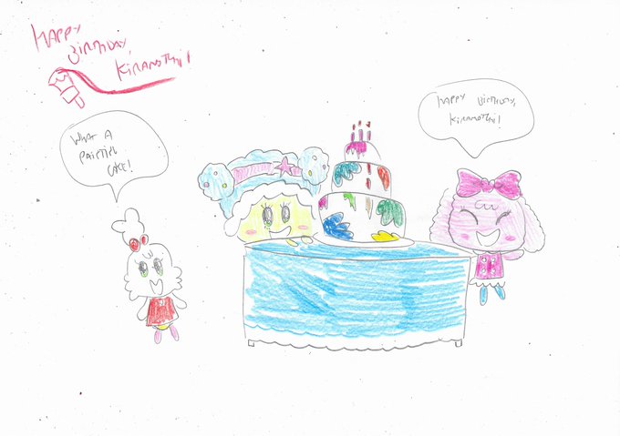 It's Kiramotchi's birthday and she got a very colorful cake that matches with her fiery personality! Happy birthday, funny painter! #Tamagotchi #FanArt
