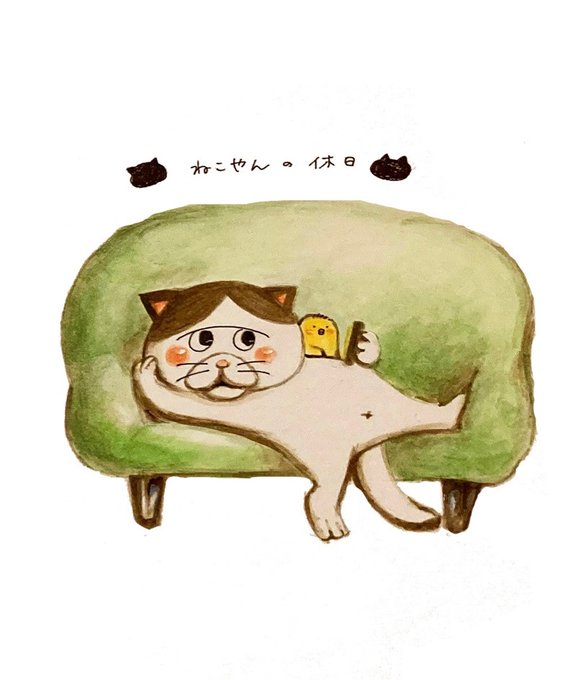 ぐぅたらしてる姿を描くのが1番楽しい🤣 #イラスト #猫