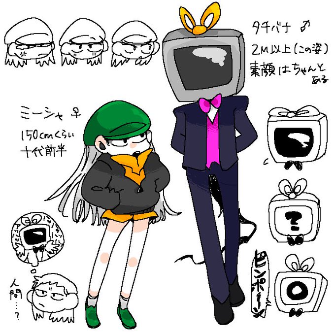 @tos 少し前に描いた創作📺🎶かわいいでしょ!? タチバナさん人間時(?)はまあまあ無口で物静かって感じだから両方知っとるホシノは「何でだよ(まあ俺には関係ないけど)」て思ってる
