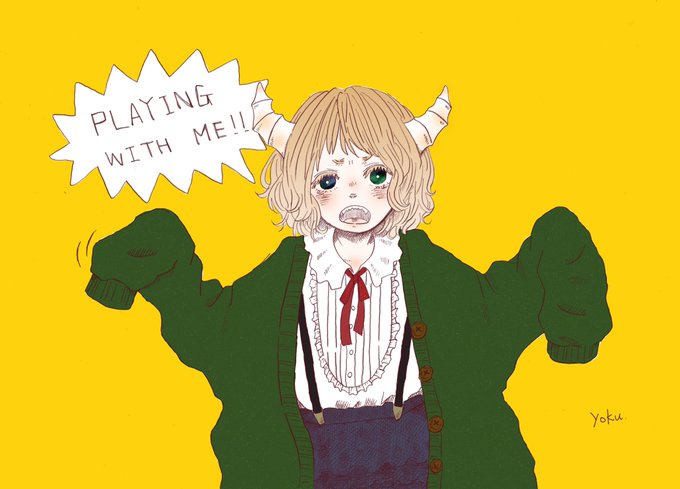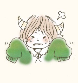 本人画像を参考にこどもかいじゅうとお揃いのツノ付けさせて頂きました!がおーって感じです(「 'ω')「