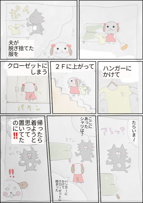 #あいさつ #ただいま #おかえり #結婚15年め #夫婦 #テキトー #教育に悪い #イラストエッセイ #絵日記 #わんわんふ~ふ #ダー吉 #よめごん