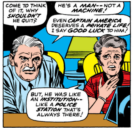 誰ともつかない人物に「お前は、やはりキャプテン・アメリカなんだ。スティーブ・ロジャースに戻るよりずっと容易くな」と言われ…「彼」は星条旗のアベンジャーに戻る決意をする