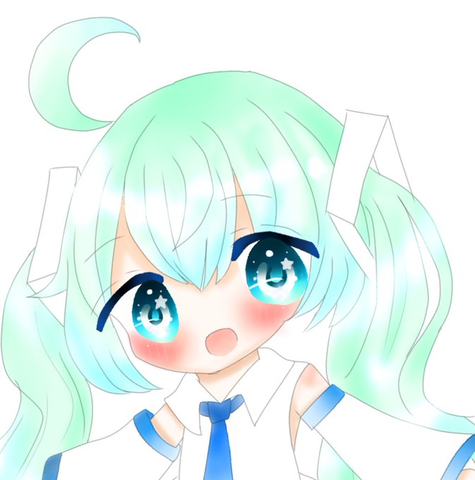 桜ミク描いてる! 桜ミクの葉っぱの部分が上になっててうさみみみたいになった…!