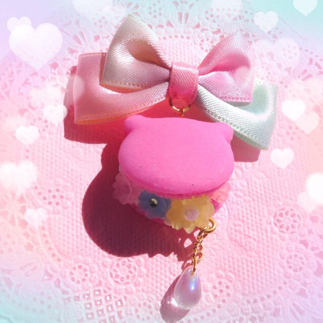 くまちゃんのマカロンにお花を挟みました✿*5㌢程のブローチになります♡