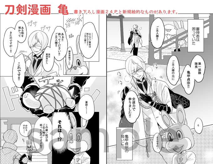 再録本「すれ違い本丸 うぇぶ再録ぷらすぷらす」 発行日2020.10.11/A5/P120/ギャグ/通販のみ pivixで公開した漫画⑤~⑦とM・S、書き下ろしは「刀剣漫画 亀」です。 pivixページ【https://t.co/r6VTGH4tV3 】 表紙デザインはmuhi様(@muhi_design)にお願いしました!以下サンプルです 1/3