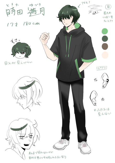【時田遊月】 1→高校生 2-3→10年後 身長はそんなに変わらなくて襟足が伸びてサイドが僅かにツーブロでピアスが増えている10 years after #ヨネグレ一次創作
