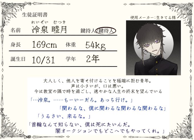 2年の🔑待人、🎭冷泉睦月(れいぜい むつき)です。