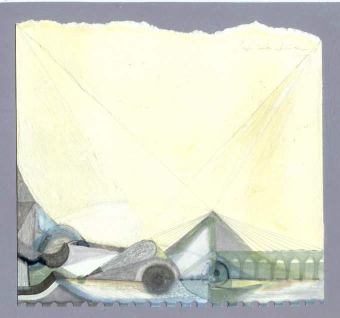 どこかにありそうな景色 古典的な画風を意識して描いたものです。 抽象的ながら どこかにありそうな景色 を空想して、、、 古い画用紙、油性マーカー+色鉛筆+鉛筆