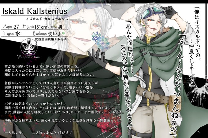 こちらの素敵な企画様【 @weapon_twin 】に4人目失礼致します。